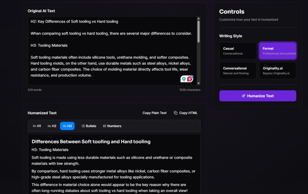 However, I noticed that when using this tool, the quality of writing decreases as the bypass level increases. Flow and quality can suffer in ‘enhanced’ mode because it is often trying to bypass detectors by all means.