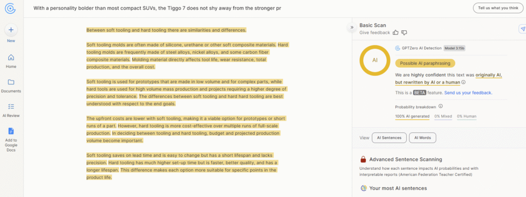 There’s also its own detector, which I gave a spin. Sadly, it’s not reliable when compared with detectors like Copyleaks and GPTZero.