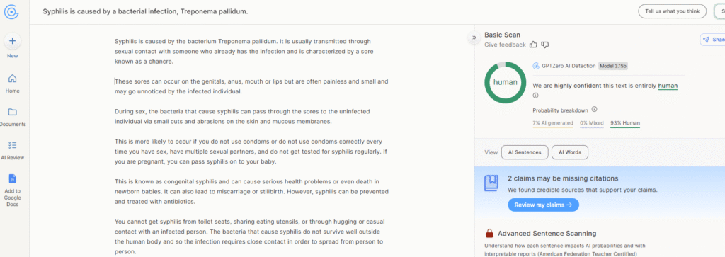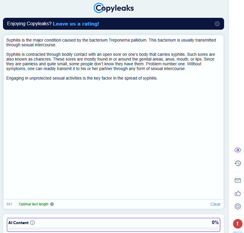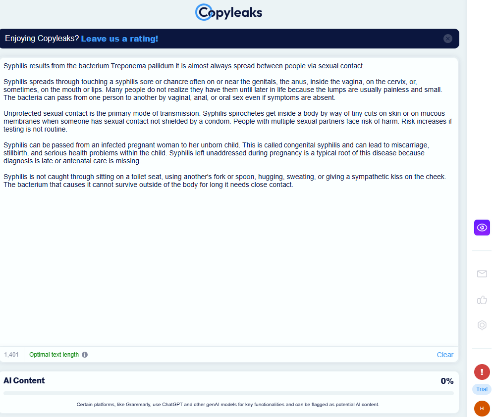 • Free detector isn’t as good or reliable as GPTZero or Copyleaks
