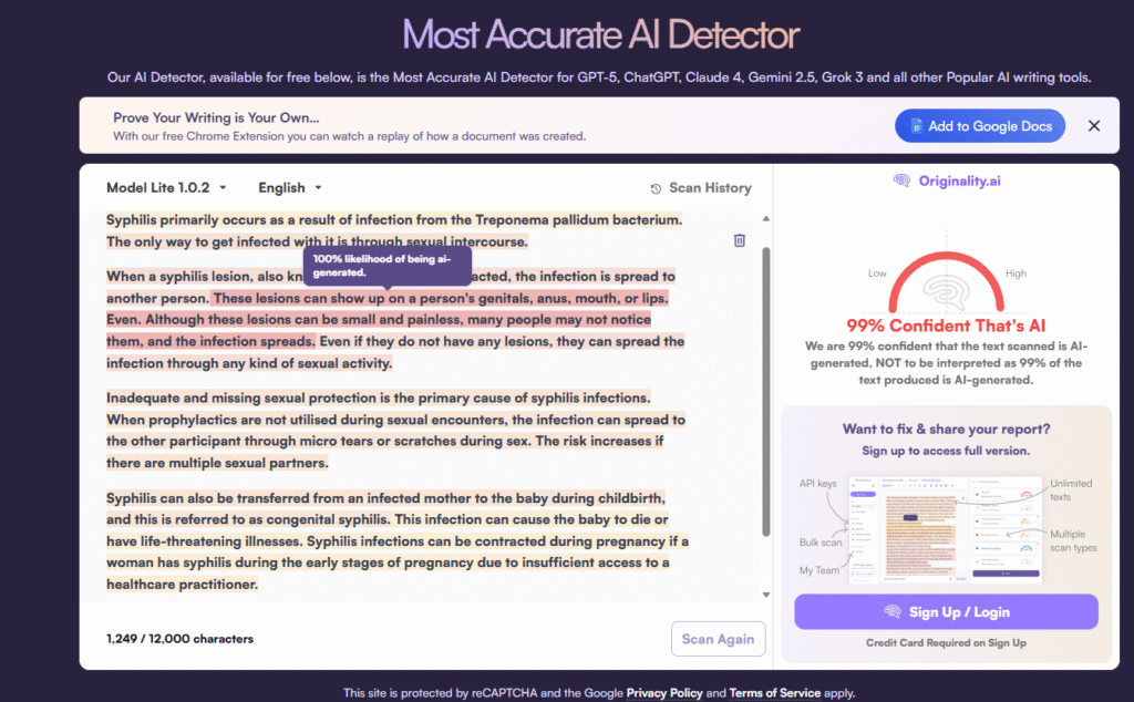 TwainGPT has revealed in this screenshot, can sometimes bypass Originality AI.